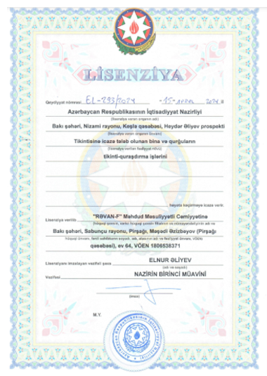 Şirkətimiz EL-293/2024 nömrəli və 15 aprel 2024-də tarixli lisenziyası ilə fəaliyyətə başlamışdır. Qısa bir zamanda korporativ idarəetmə prinsiplərinə uyğun olaraq formalaşmış, peşəkar inzibati və texniki işçi heyətini şirkətə cəlb edə bilmişdir.